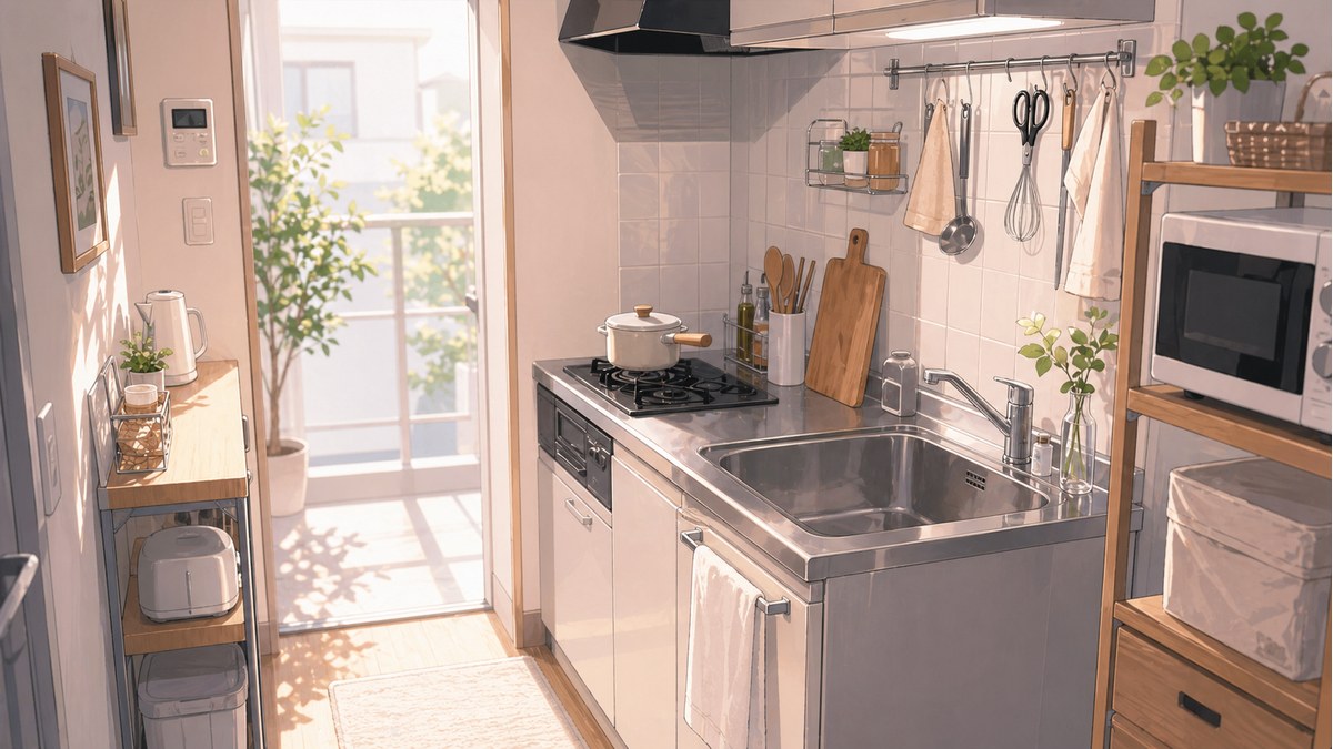 一人暮らしのキッチンが散らからない収納ルールを作るには、収納用品を増やす前に、散らかる原因と行動の流れを見直すことが大切です。よく使う物をワンアクションで取れる位置に置き、ストックの上限を決め、調理の流れに合わせてゾーン分けするだけでも、片付けの負担はかなり軽くなります。