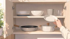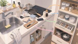 たとえば、一度も使っていないマグカップを何となく残していると、毎日使うコップのスペースを狭めます。ですが、期限を決めて見直すと、本当に必要な物が見えやすくなります。キッチン収納は、物を詰め込む技術ではなく、使いやすい状態を保つ判断の積み重ねです。